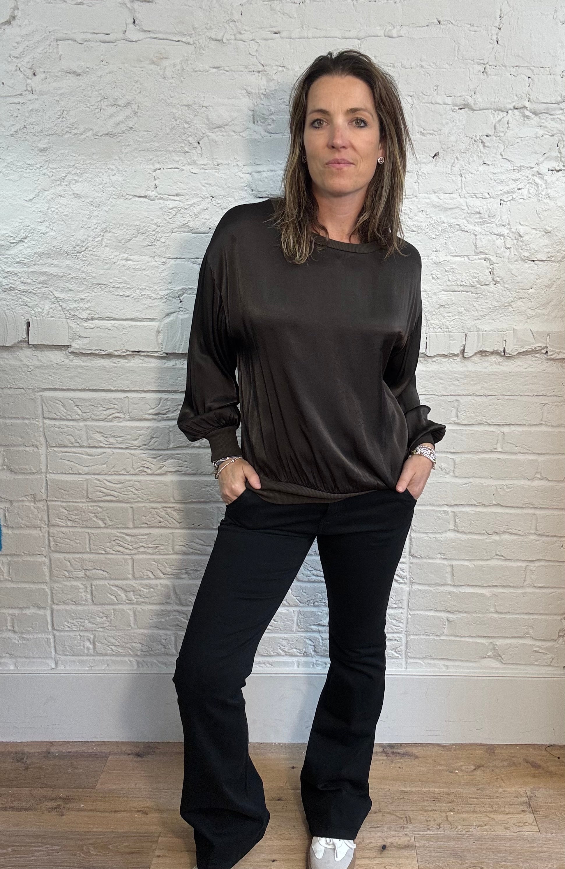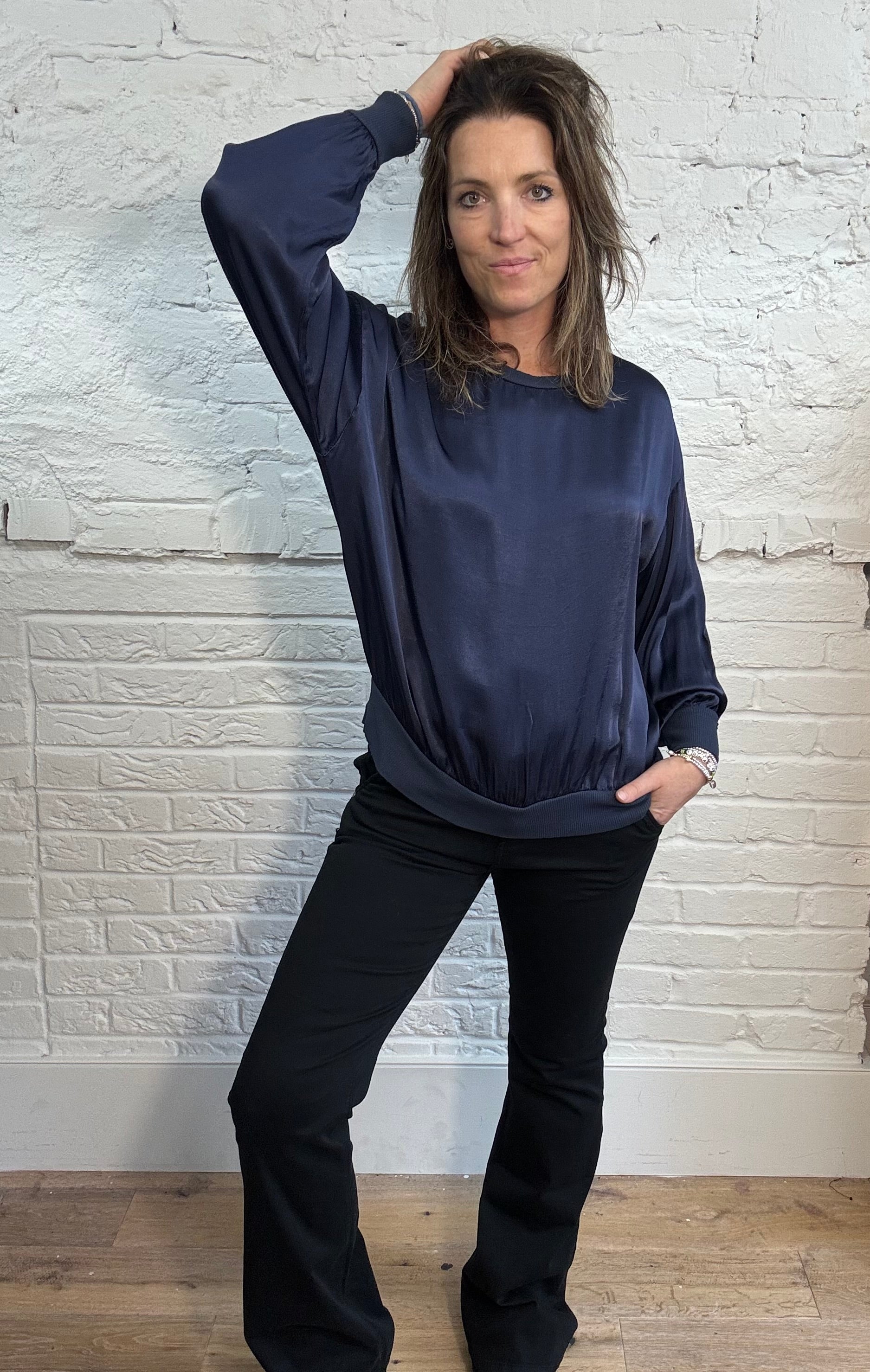 Effortlessly chic and luxuriously soft, the Tess Satin Top brings a touch of understated elegance to any outfit. Designed with a relaxed silhouette and subtle sheen, it features a wide neckline, dropped shoulders, and gently gathered cuffs and hem for a flattering drape. Perfect for both casual days and evening outings, this top pairs beautifully with tailored trousers, denim, or skirts for an effortlessly elevated look.
