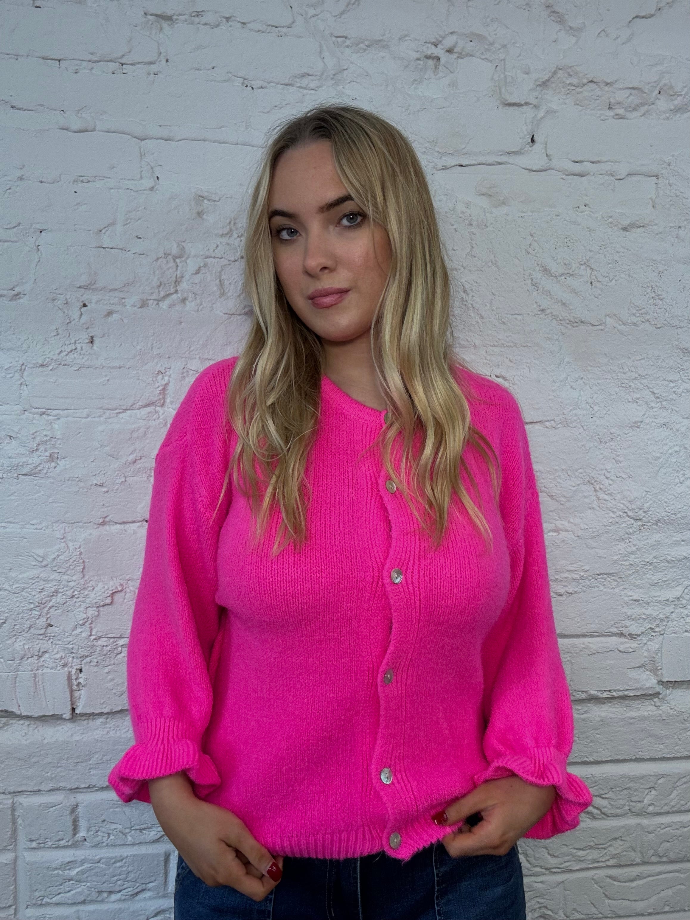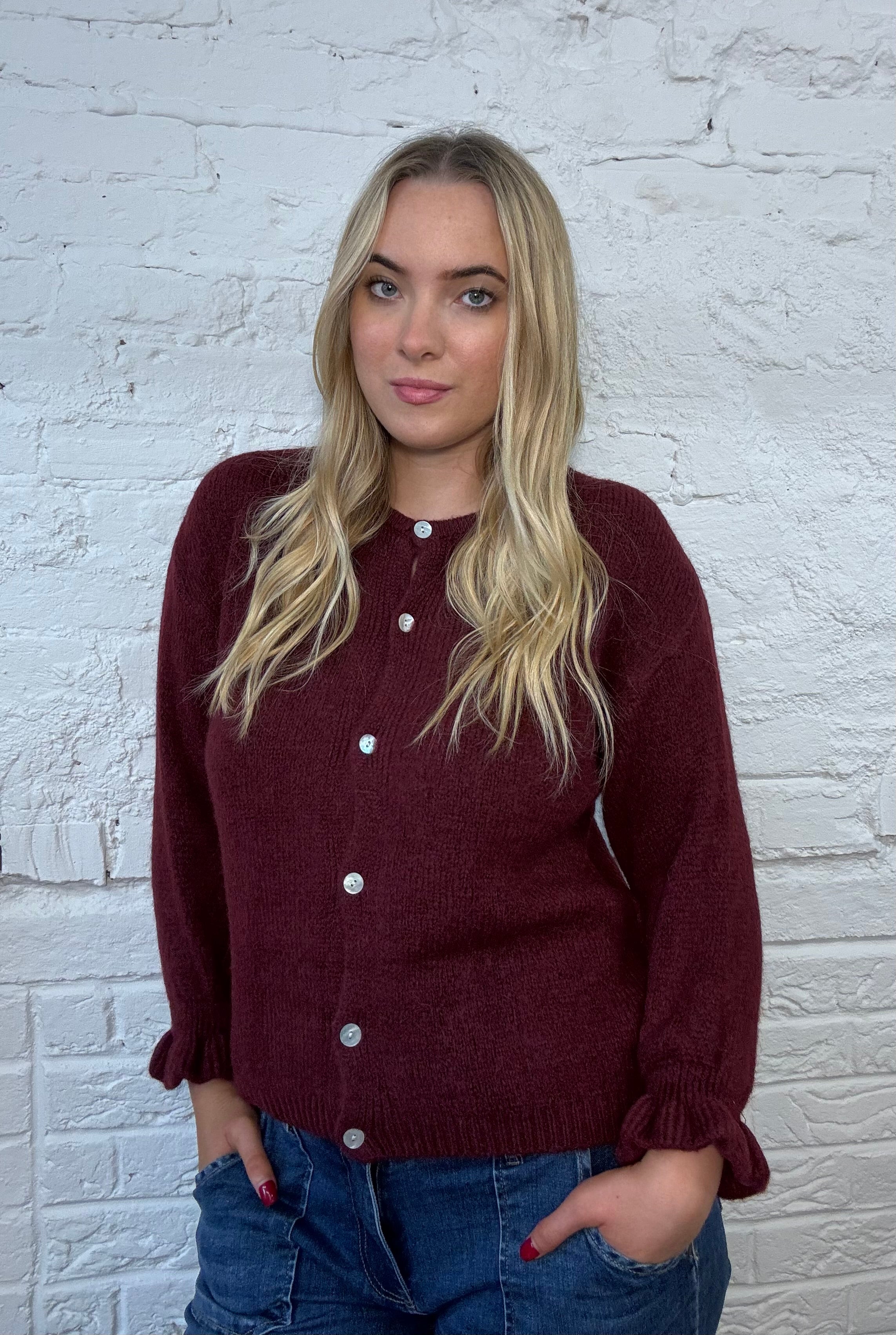 Stay cosy in this luxuriously soft alpaca blend cardigan, designed with a relaxed silhouette and feminine charm. Featuring delicate ruffled cuffs and a classic button-down front, this piece combines comfort with subtle, stylish detailing. The buttons are crafted from elegant mother of pearl, adding a refined touch to the plush knit texture. Lightweight yet warm, it's perfect for layering over tees, blouses, or dresses. Whether you're lounging at home or heading out, this cardigan is a versatile staple for cooler seasons.