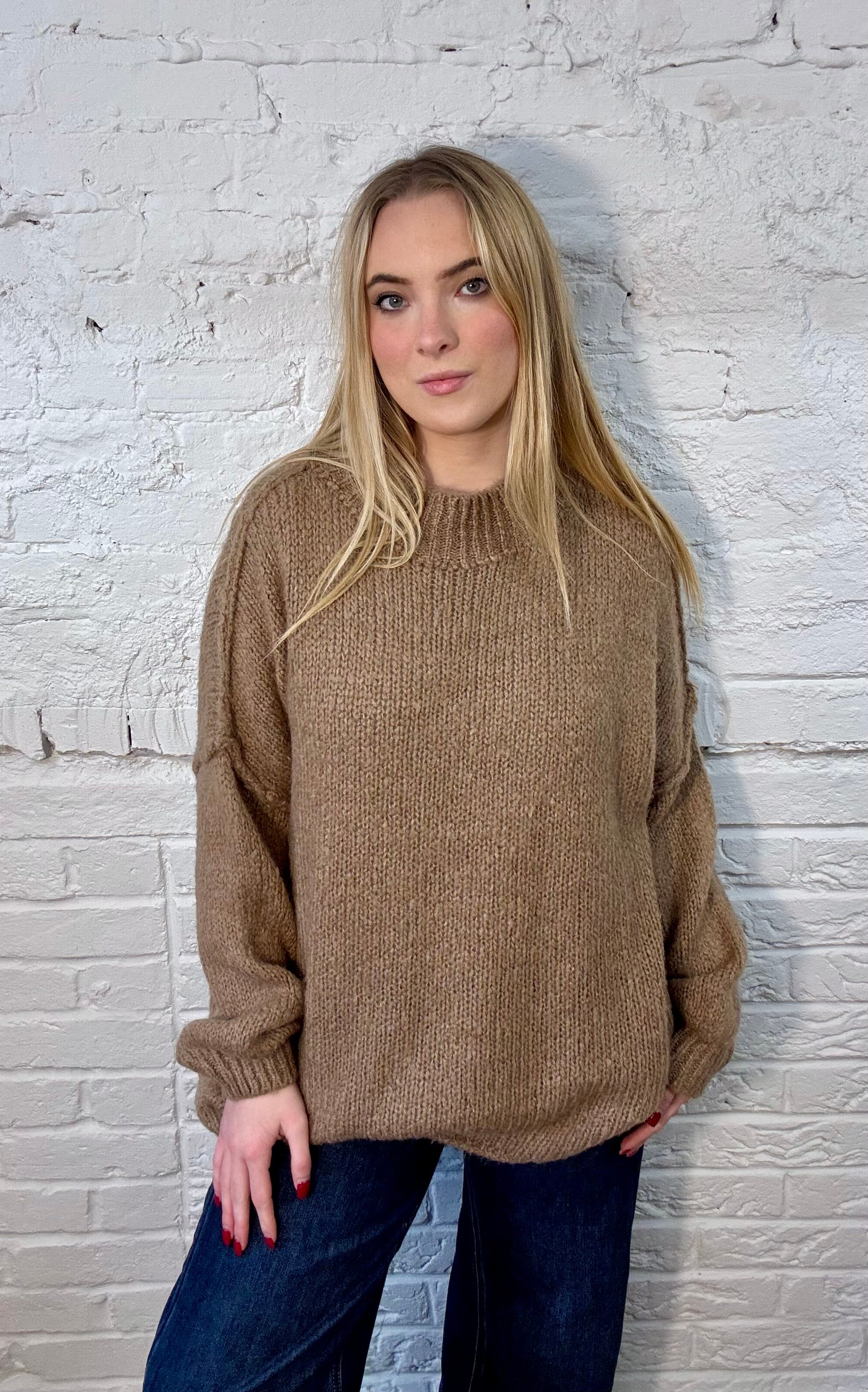 Embrace ultimate comfort with this luxuriously soft, chunky knit sweater that's perfect for those relaxed, laid-back days. Featuring a classic crew neckline and an oversized, relaxed fit, this piece is designed to keep you cosy while looking effortlessly chic.