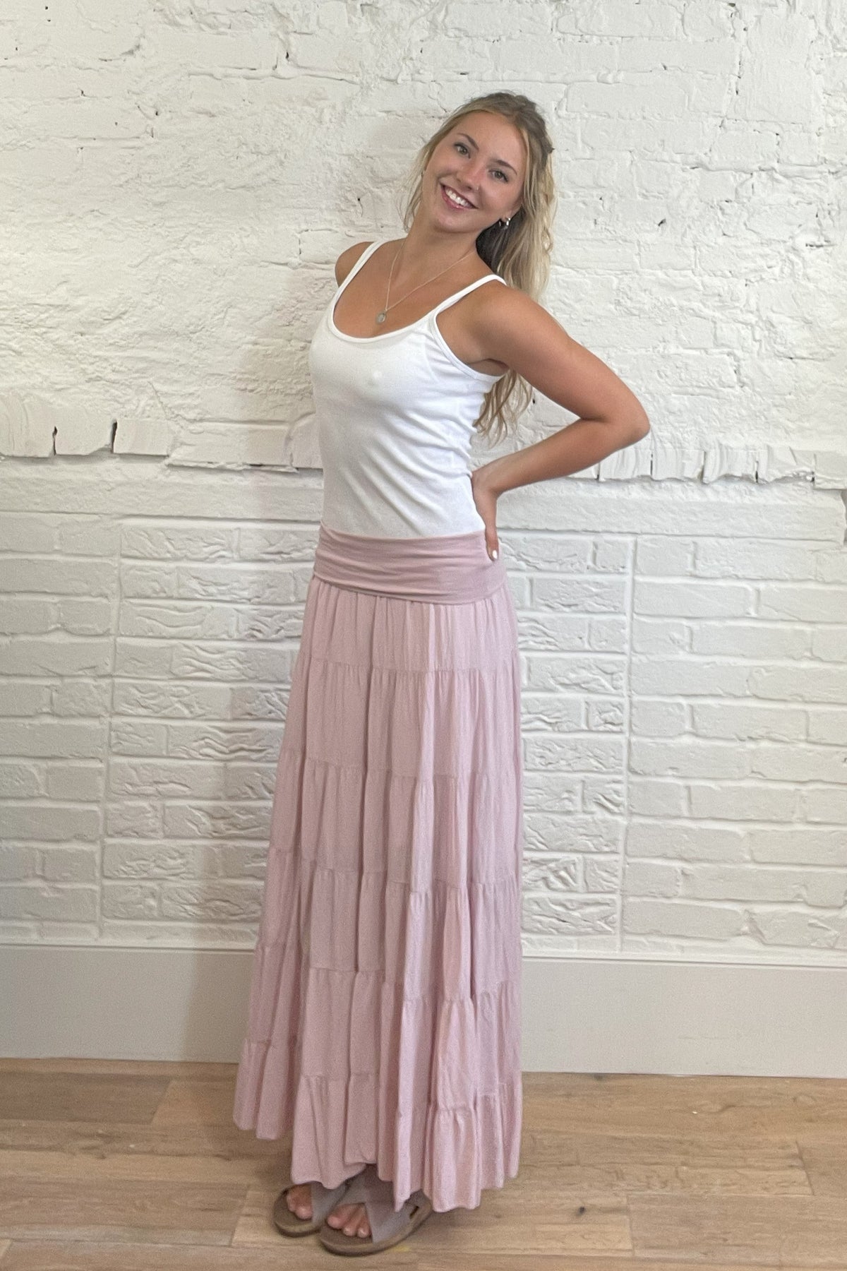 Rock aus 100 % Baumwolle mit dickem, bequemem, schlichtem Bund, der sowohl Stil als auch Komfort bietet. Seine Leichtigkeit und sein luftiges Gefühl werden durch ein Stufendesign ergänzt.