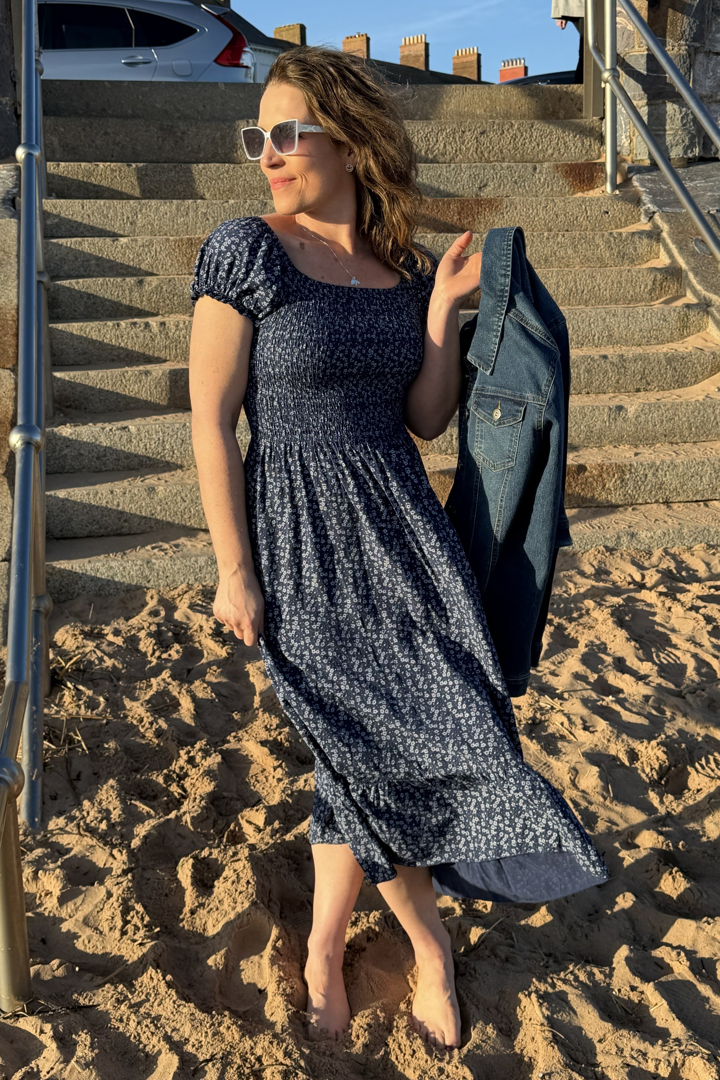 Todo guardarropa de vacaciones necesita un vestido largo ligero como este. Tiene un elegante cuello Bardot, un corpiño fruncido y mangas cortas. Es una gran incorporación a un guardarropa de clima cálido. Combínalo con sandalias planas o realza tu look con cuñas de tacón.
