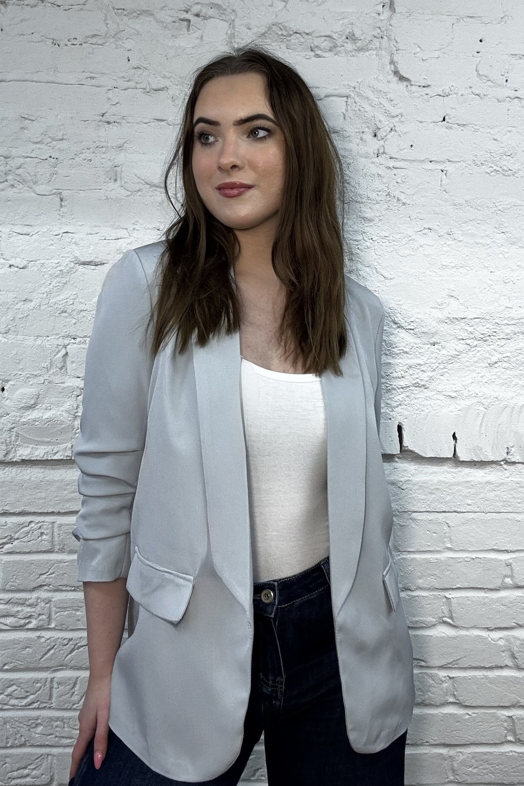 Say hello to your new style sidekick: the Caitlin Ruched Sleeve Jacket! With trendy ruched sleeves and chic faux pocket details, it’s effortlessly stylish and so easy to wear. Perfect for workdays, weekend brunches, or anywhere in between, this jacket's relaxed fit keeps you looking polished without sacrificing comfort. Who says you can’t have it all?