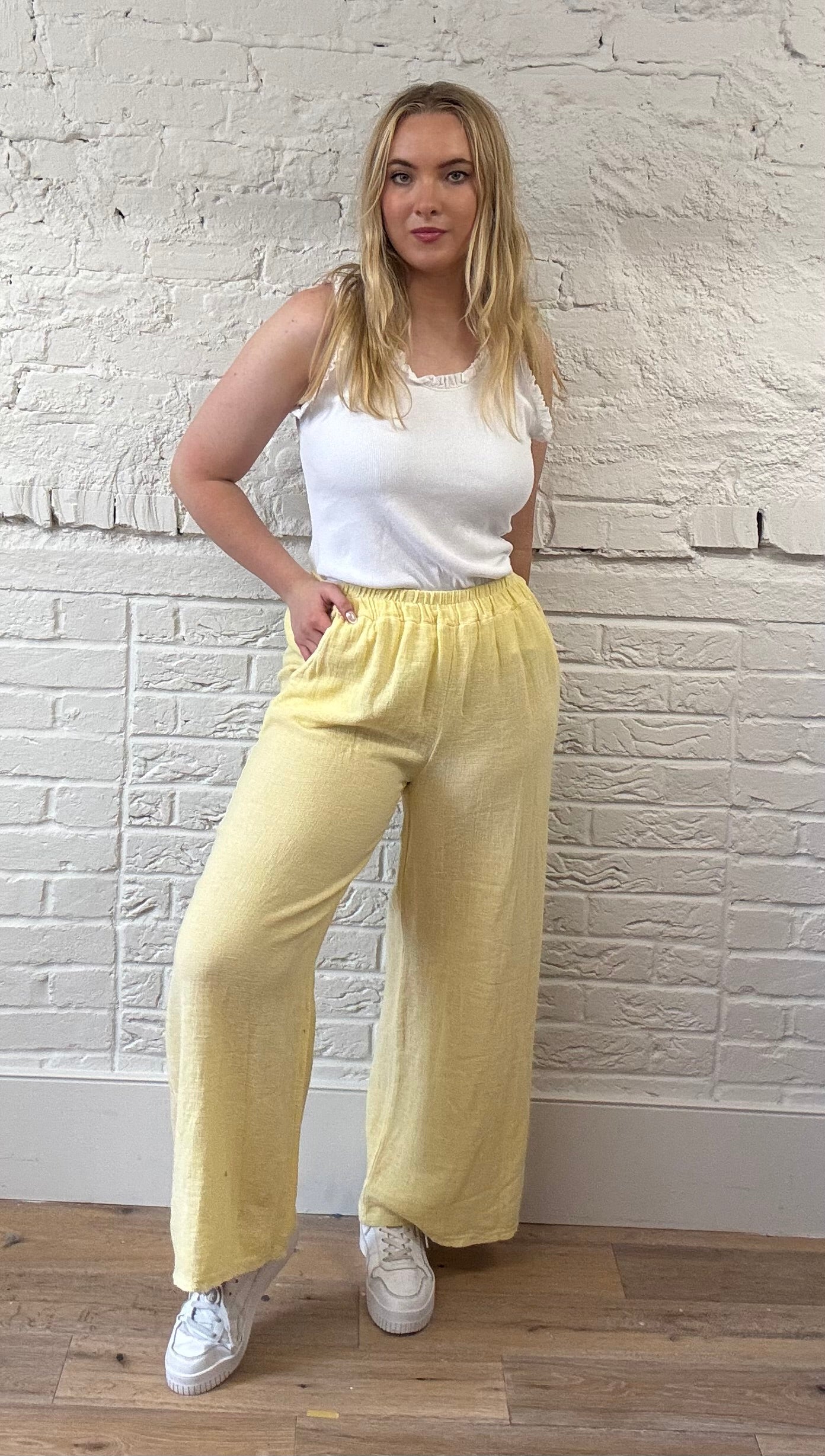 Introducing the latest must-have trouser. Crafted from the softest lightweight cotton and linen hopsack fabric. Whether worn with a smart top or casual with a tee, these trousers embody effortless style. Perfect for any occasion, with their simplicity and charm. Ideal for a sunny getaway or a stroll by the beach, these trousers are the perfect blend of trendiness and timeless sophistication.