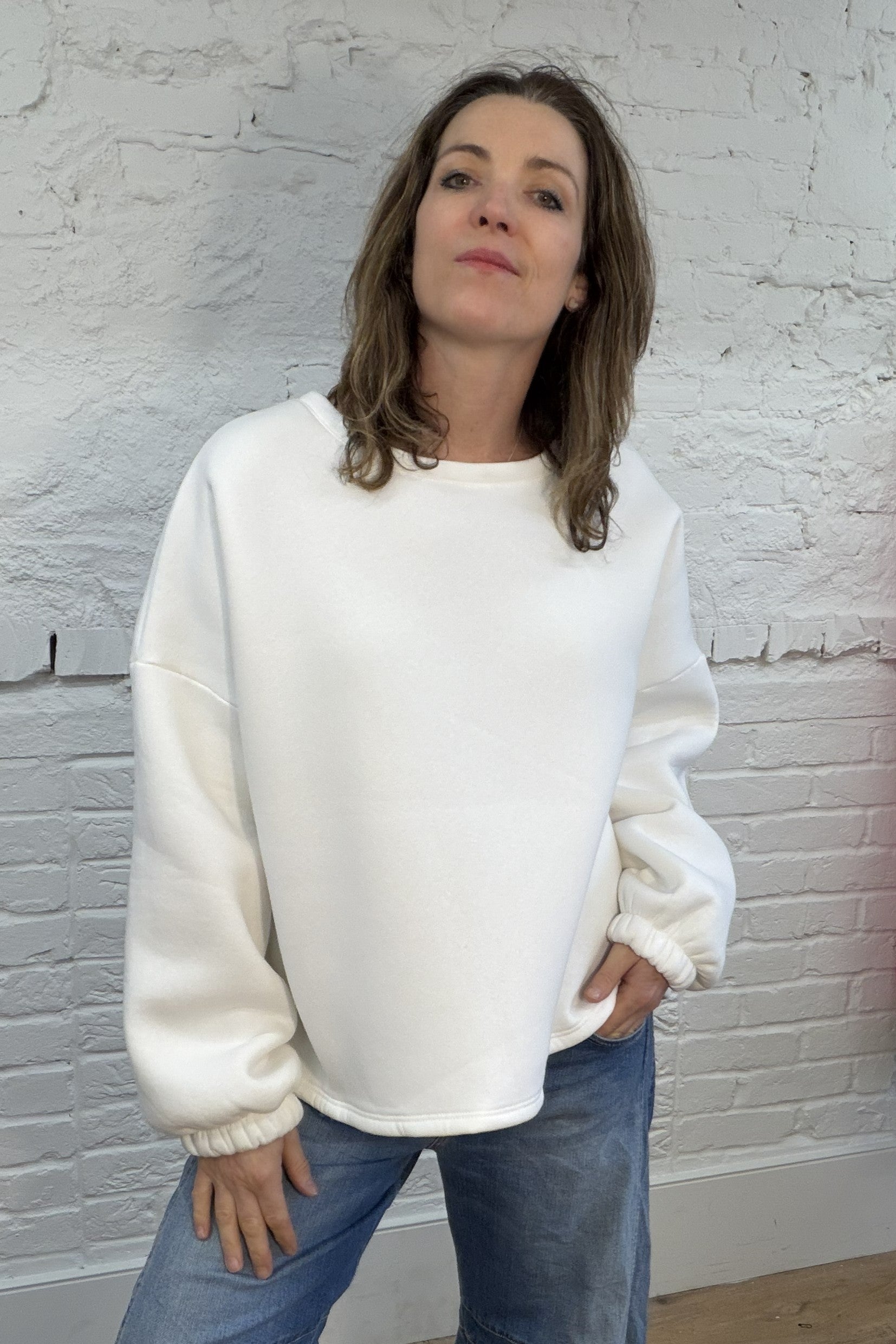 Designed with a relaxed, slightly oversized fit, it features dropped shoulders and comfortable elastic cuffs for that effortlessly cool, laid back vibe. Pair it with your favourite denim for coffee runs, school drop-ffs or cosy nights in,
