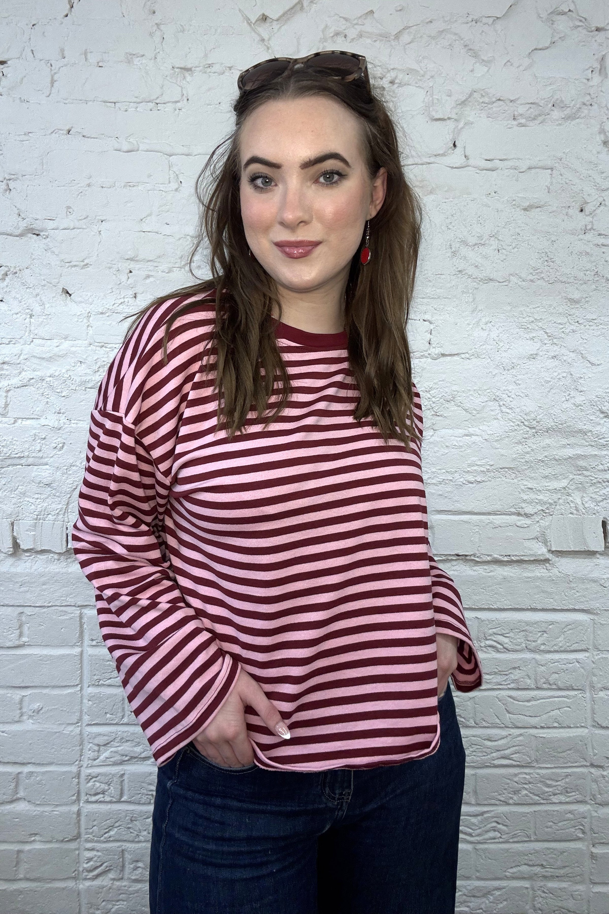 The classic stripe keeps this things timeless, while the wide sleeves adds a modern, laid-back feel. Soft breathable fabric makes it ideal for layering or wearing solo for comfort while still looking stylish. It pairs just as effortlessly with denim as it does tailored trousers or joggers.