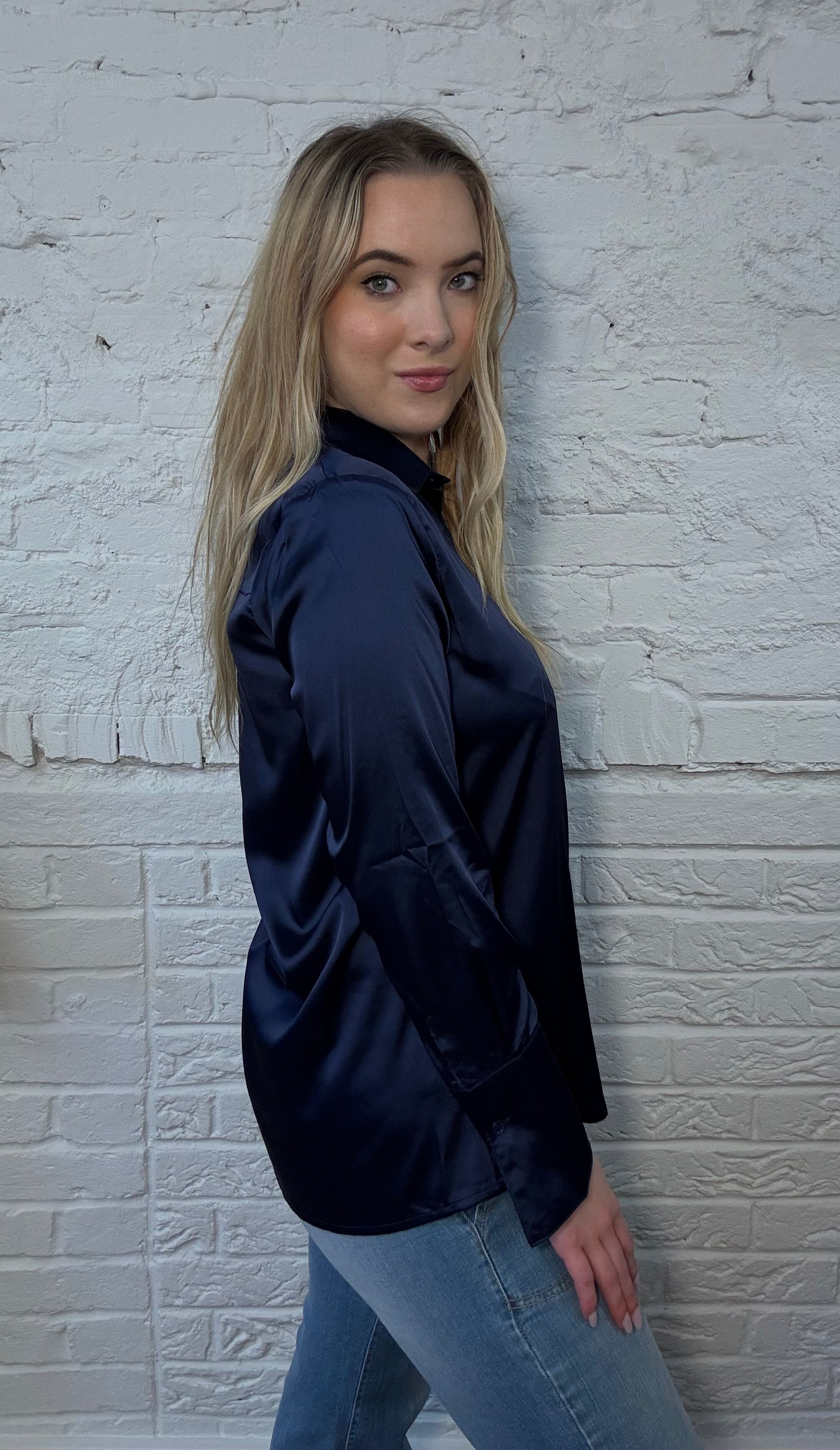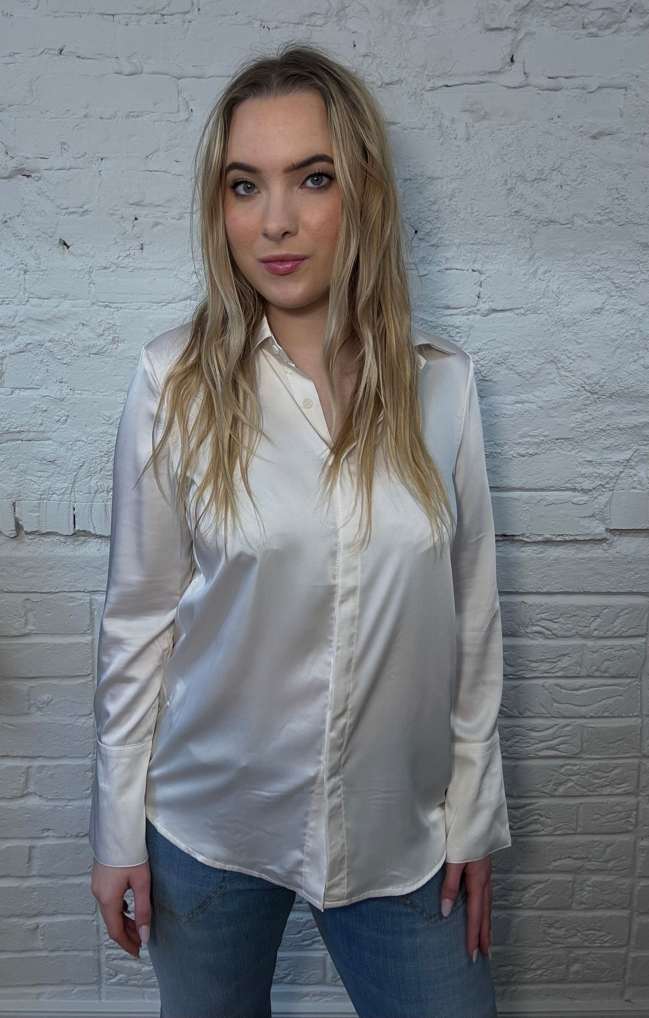 Meet Eloise — the polished yet effortless staple your wardrobe has been waiting for. Crafted with a smooth satin finish, she brings understated elegance to everyday styling. With a crisp collar, refined cuffs and a relaxed, easy drape, she’s equally at home layered under a blazer or worn loose for a softly tailored look. Eloise proves simplicity can be striking — timeless, graceful and endlessly versatile.