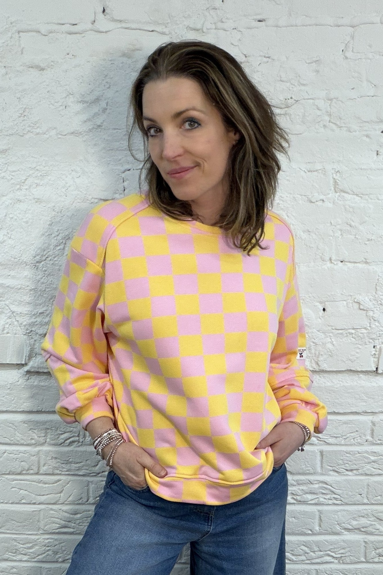 Make a statement with the Molly Check Sweatshirt! A fun twist on a casual classic. Featuring a bold checkerboard pattern and a relaxed fit, it adds instant personality to your everyday look.